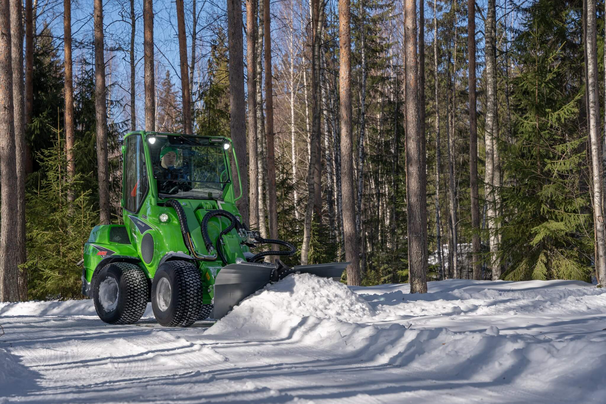 Avant laadurid muudab veelgi praktilisemaks 4×4 veoskeem, kus igat ratast liigutab eraldi hüdroajam. Tänu sellele saavad rattad liikuda erineval kiirusel, tagades nii rehvide pikema eluea, vähem rehvijälgi õrnematel pinnastel ning parema haarduvuse ka kõige libedamates oludes. Juhi jaoks on neljarattavedu intuitiivne ning mugav, parandades veelgi stabiilsust ja lihtsustades laaduri igapäevast kasutamist.